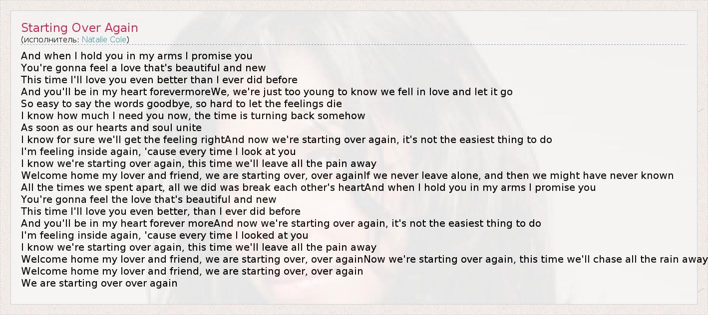А как ты думаешь, о чем песня "Starting Over Again" ?