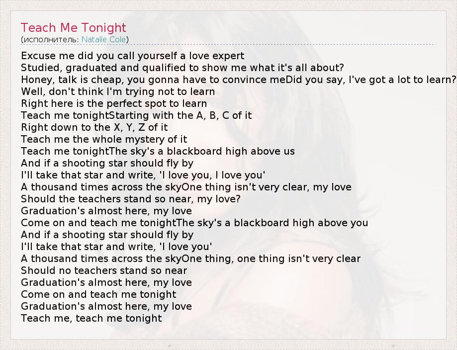 А как ты думаешь, о чем песня "Teach Me Tonight" ?