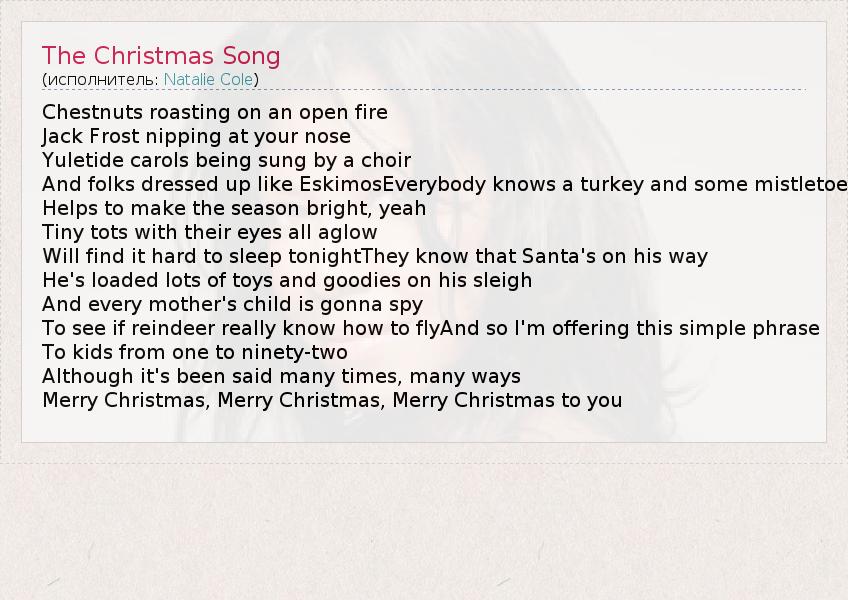 А как ты думаешь, о чем песня "The Christmas Song" ?