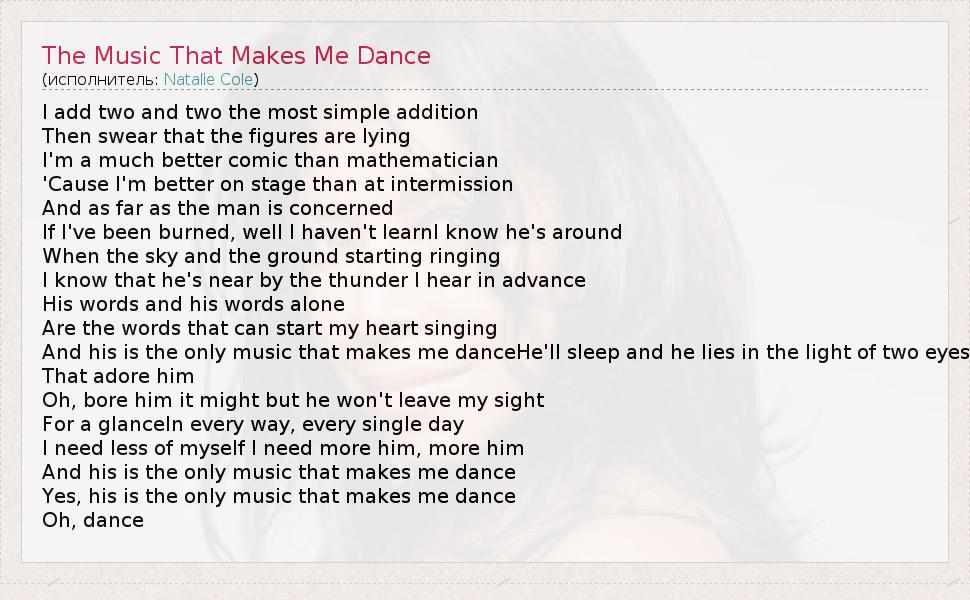 ГлавнаяИсполнителиNatalie ColeThe Music That Makes Me Dance