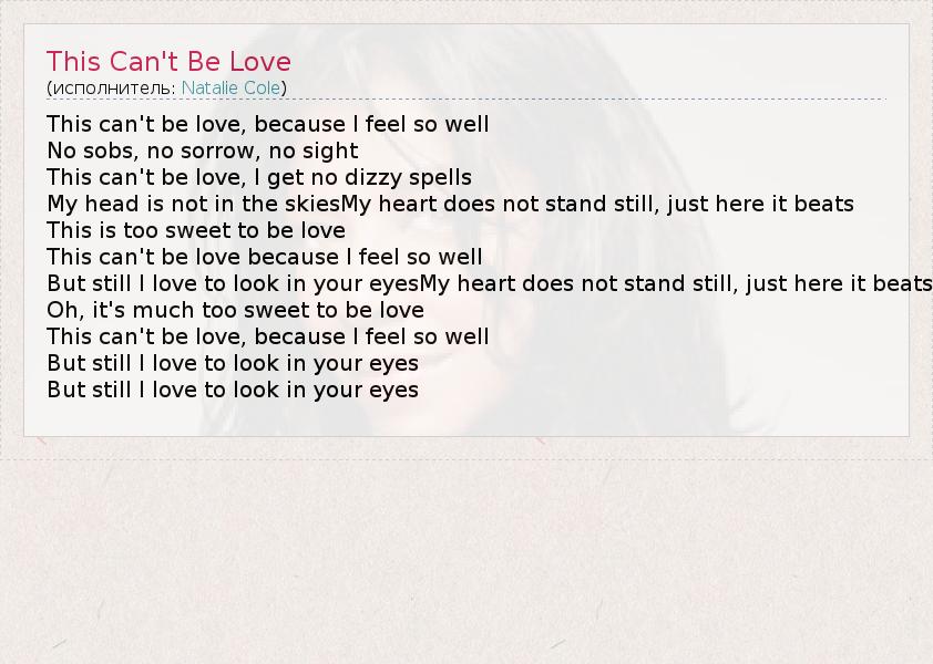 А как ты думаешь, о чем песня "This Can't Be Love" ?