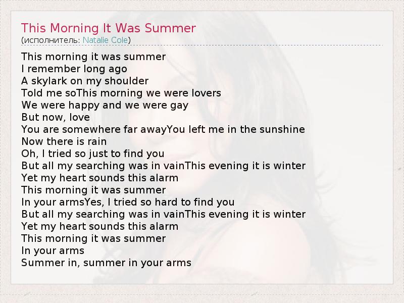 ГлавнаяИсполнителиNatalie ColeThis Morning It Was Summer