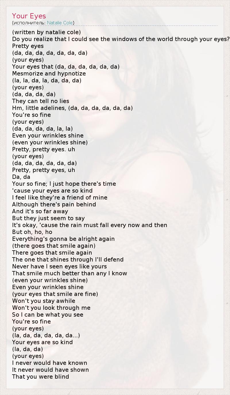 А как ты думаешь, о чем песня "Your Eyes" ?