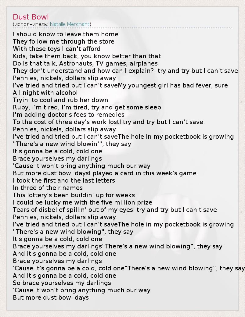 А как ты думаешь, о чем песня "Dust Bowl" ?