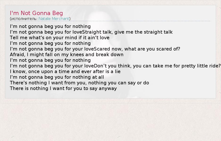 А как ты думаешь, о чем песня "I'm Not Gonna Beg" ?