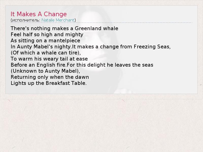 А как ты думаешь, о чем песня "It Makes A Change" ?
