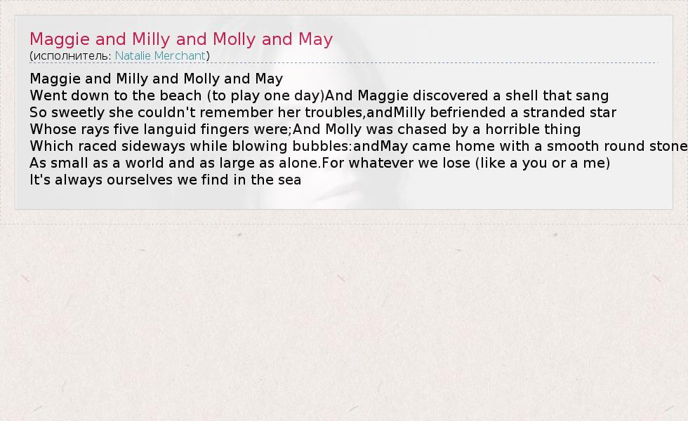 ГлавнаяИсполнителиNatalie MerchantMaggie and Milly and Molly and May