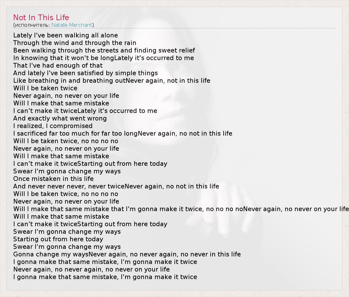 А как ты думаешь, о чем песня "Not In This Life" ?