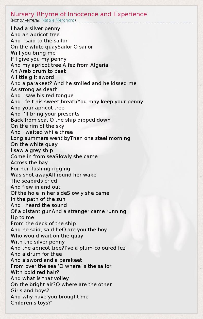 А как ты думаешь, о чем песня "Nursery Rhyme of Innocence and Experience" ?