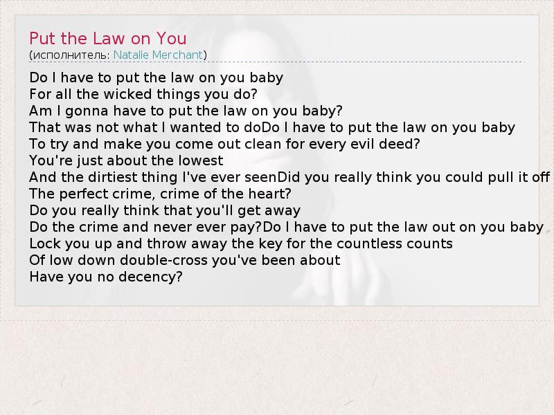 А как ты думаешь, о чем песня "Put the Law on You" ?