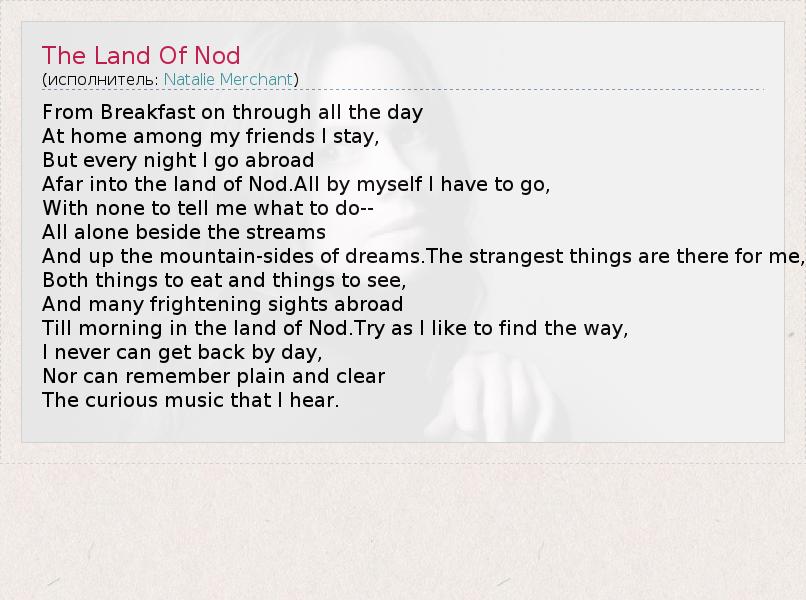 А как ты думаешь, о чем песня "The Land Of Nod" ?