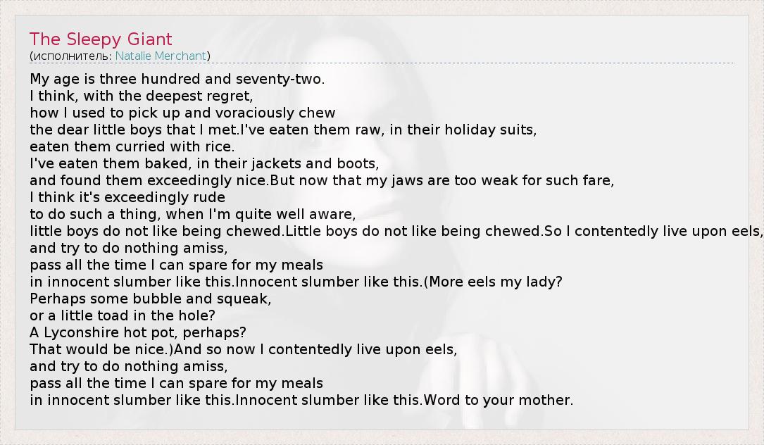 А как ты думаешь, о чем песня "The Sleepy Giant" ?