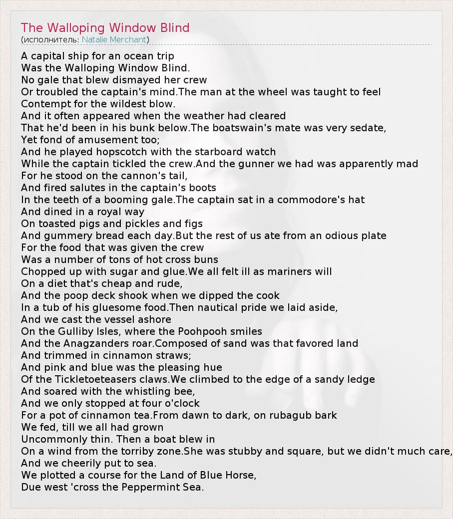 ГлавнаяИсполнителиNatalie MerchantThe Walloping Window Blind