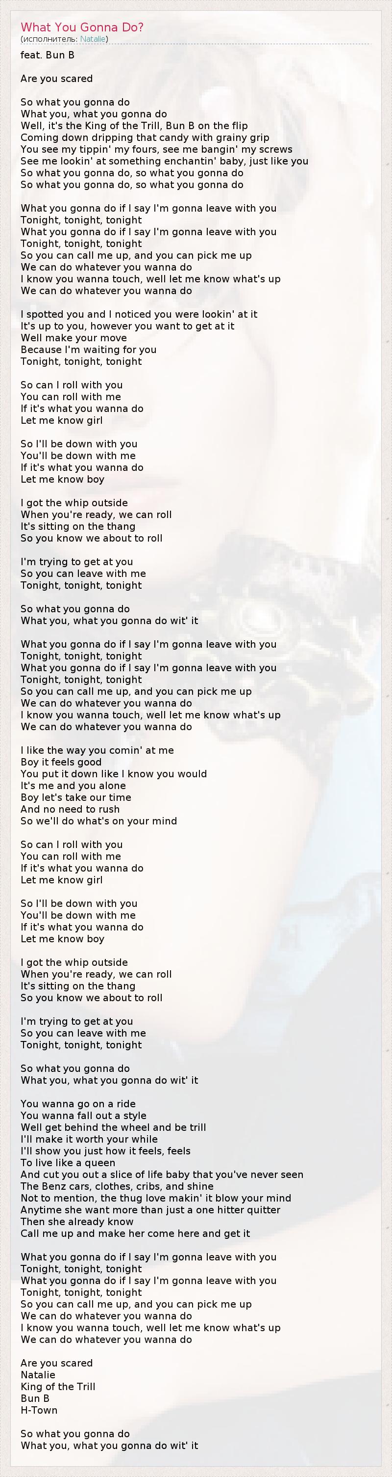 А как ты думаешь, о чем песня "What You Gonna Do?" ?