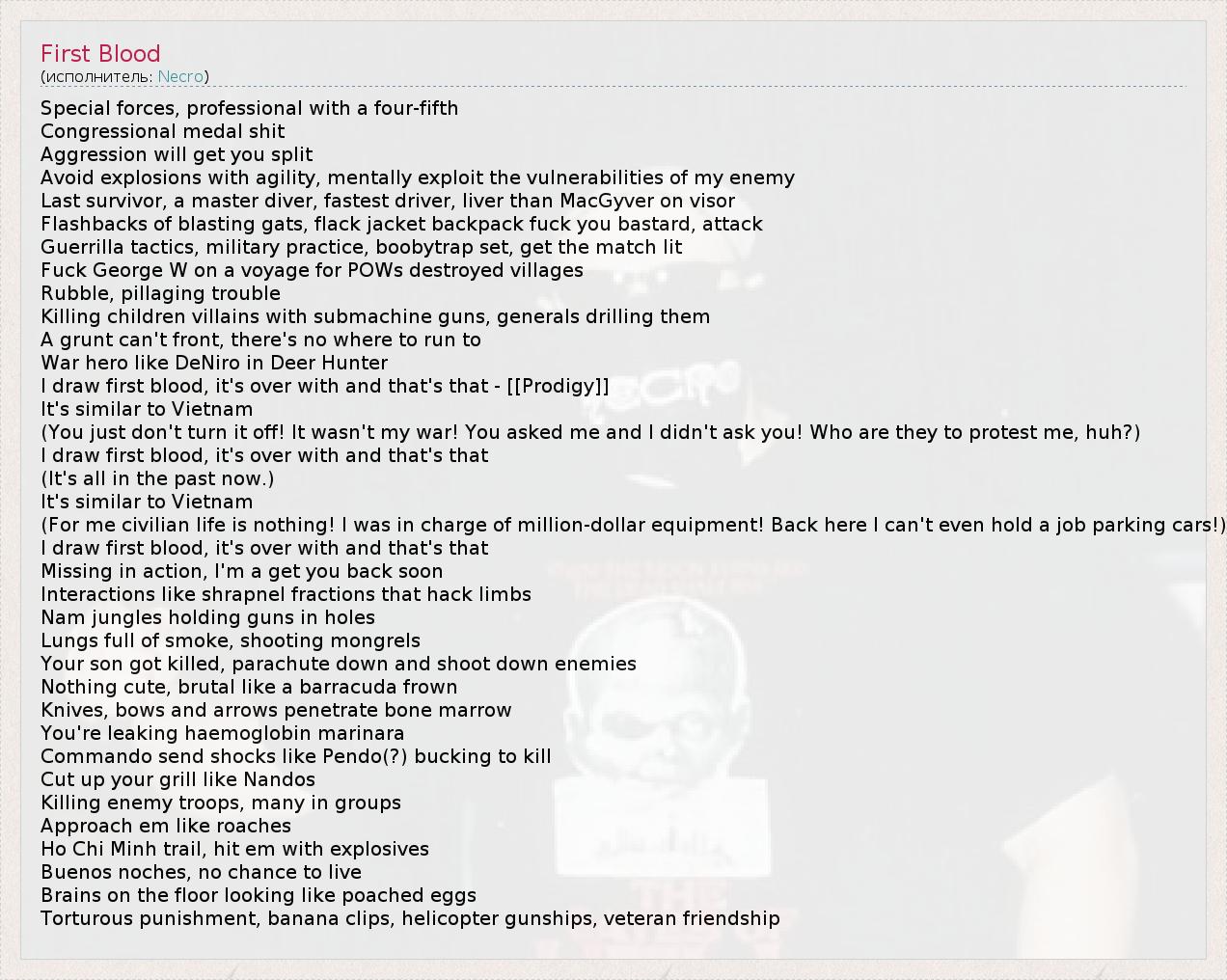 А как ты думаешь, о чем песня "First Blood" ?