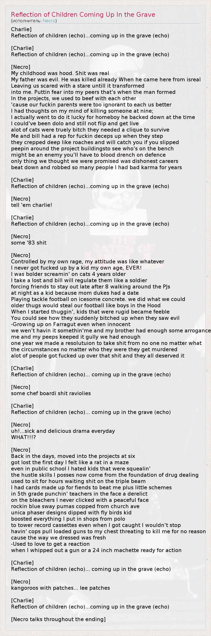 А как ты думаешь, о чем песня "Reflection of Children Coming Up In the Grave" ?