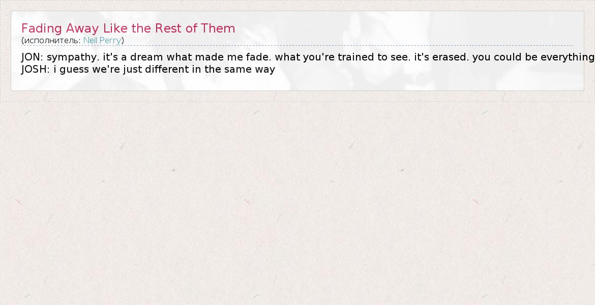 ГлавнаяИсполнителиNeil PerryFading Away Like the Rest of Them
