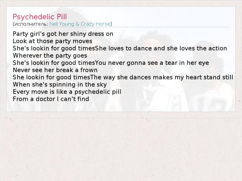А как ты думаешь, о чем песня "Psychedelic Pill" ?
