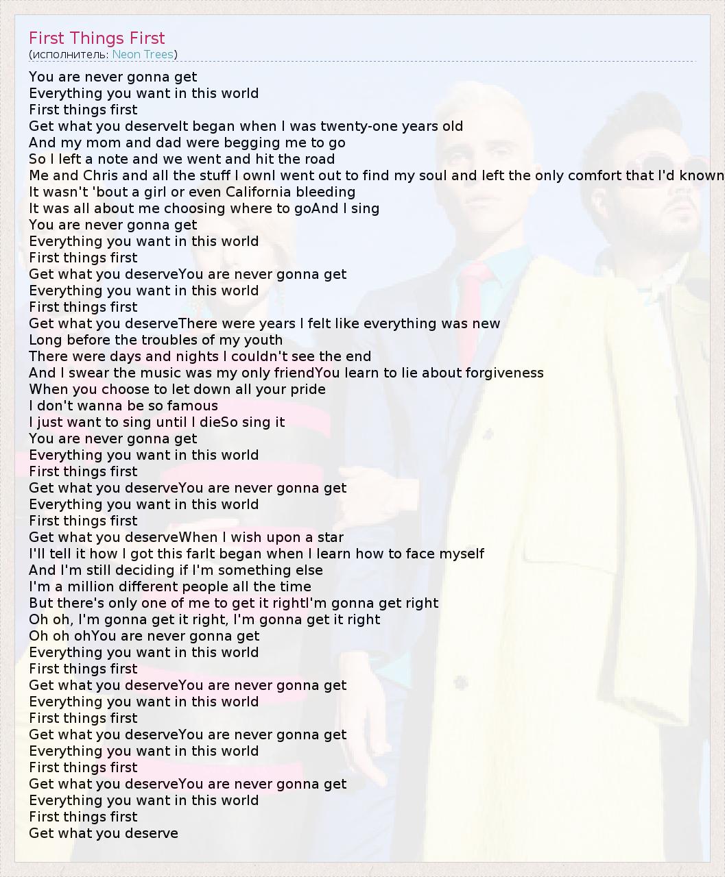 А как ты думаешь, о чем песня "First Things First" ?