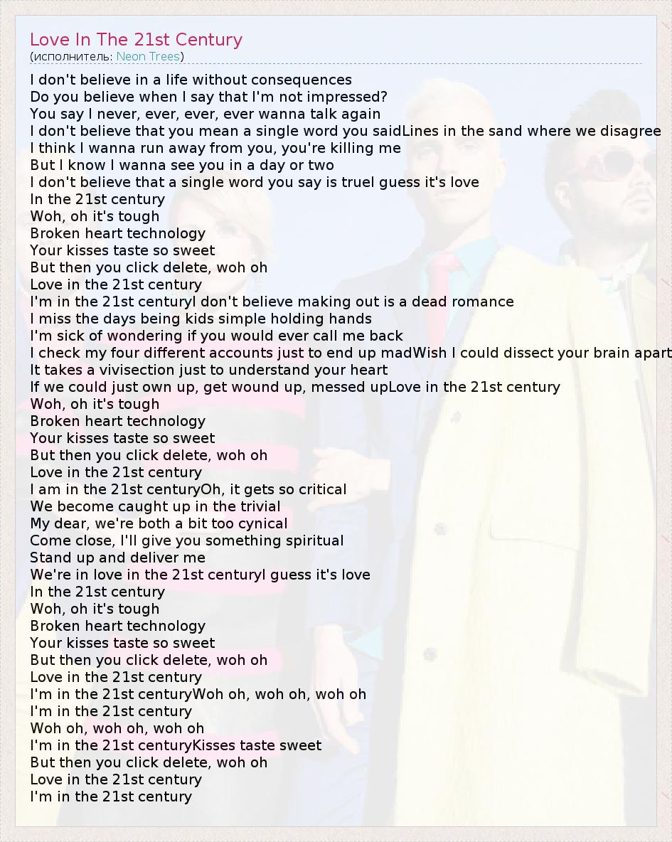 А как ты думаешь, о чем песня "Love In The 21st Century" ?