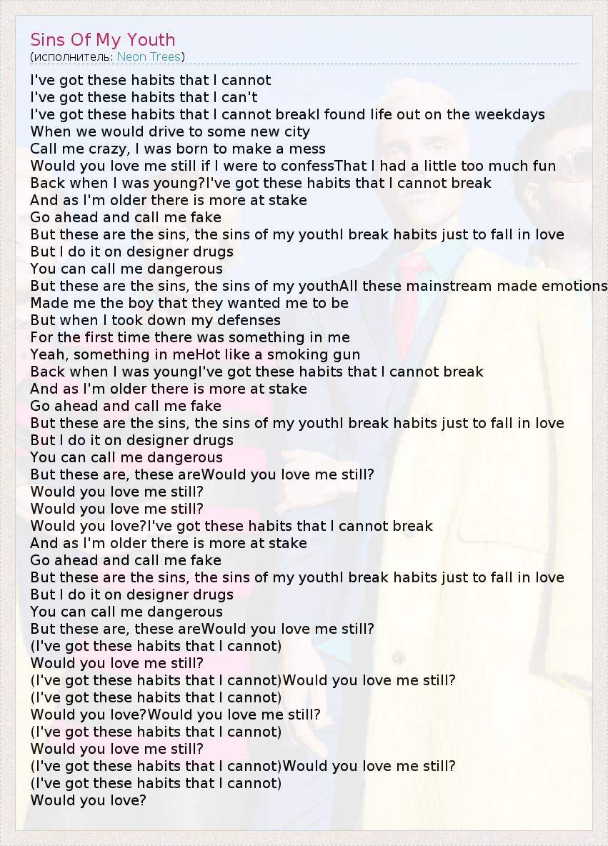 А как ты думаешь, о чем песня "Sins Of My Youth" ?