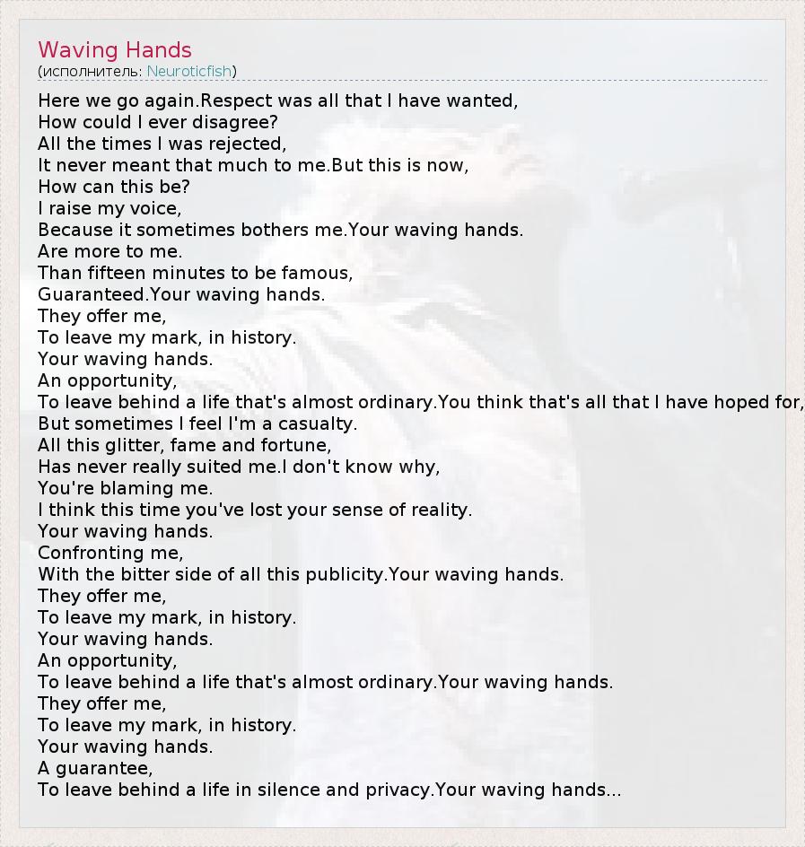 А как ты думаешь, о чем песня "Waving Hands" ?