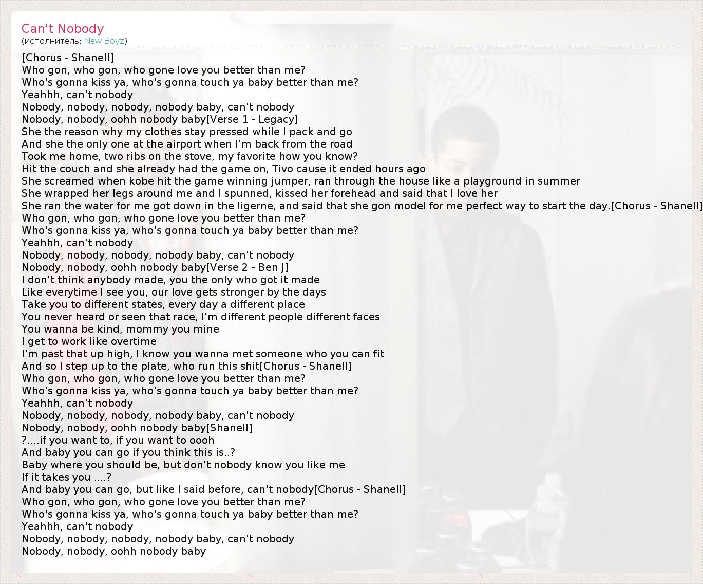Nobody, nobody, oohh nobody baby