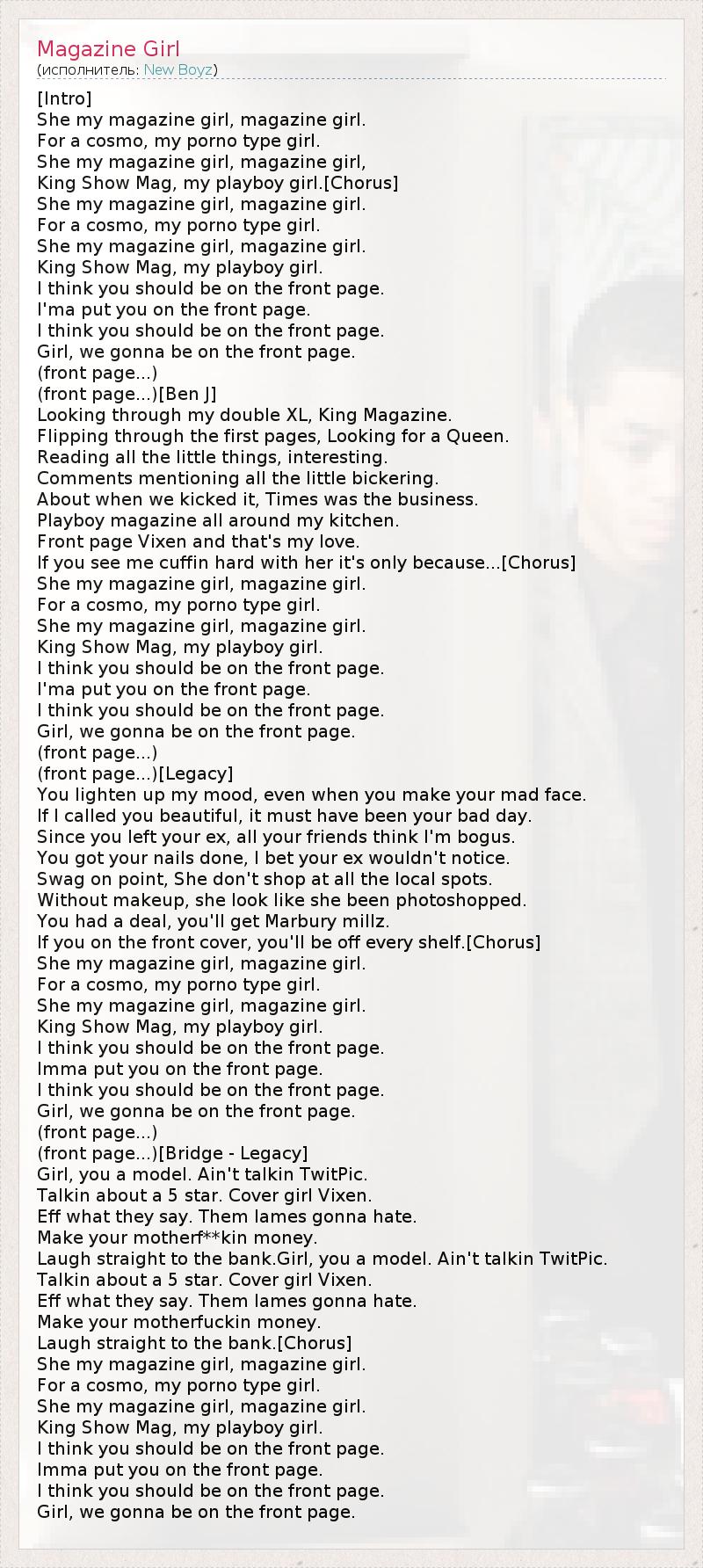 А как ты думаешь, о чем песня "Magazine Girl" ?