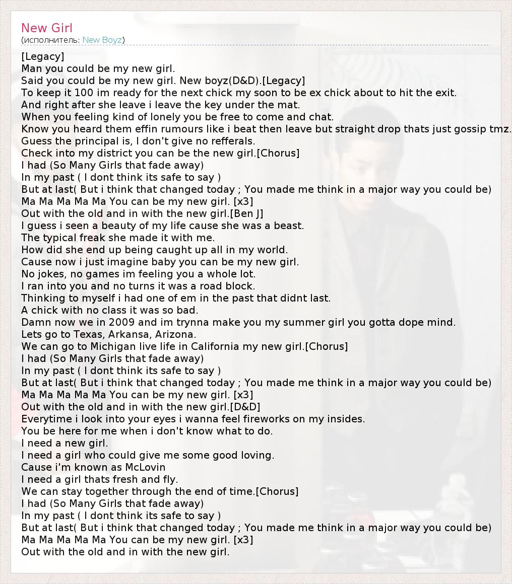 Said you could be my new girl. New boyz(D&D).[Legacy]