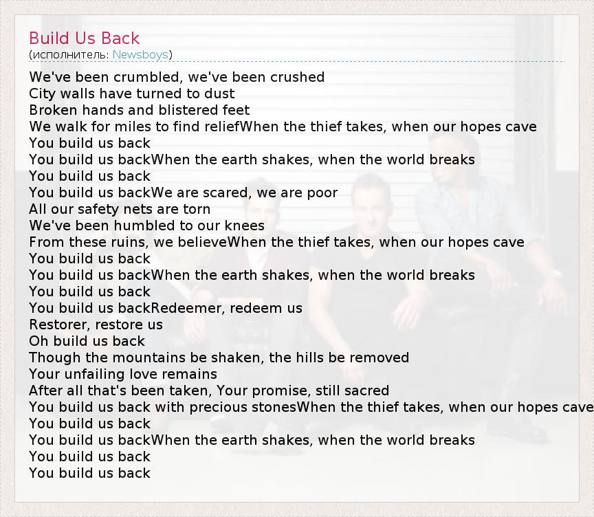 А как ты думаешь, о чем песня "Build Us Back" ?