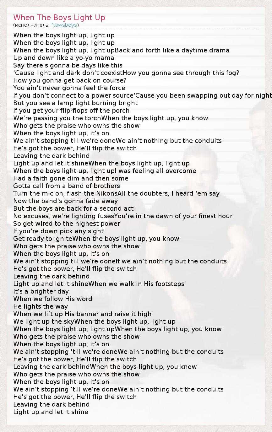 А как ты думаешь, о чем песня "When The Boys Light Up" ?