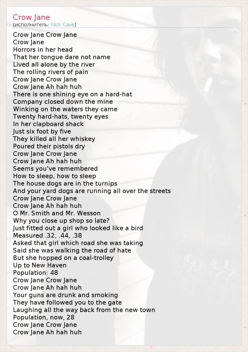 А как ты думаешь, о чем песня "Crow Jane" ?