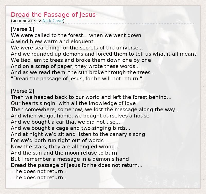 А как ты думаешь, о чем песня "Dread the Passage of Jesus" ?