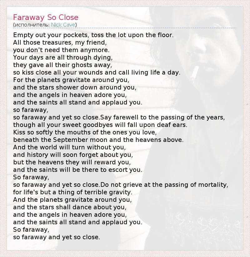 А как ты думаешь, о чем песня "Faraway So Close" ?