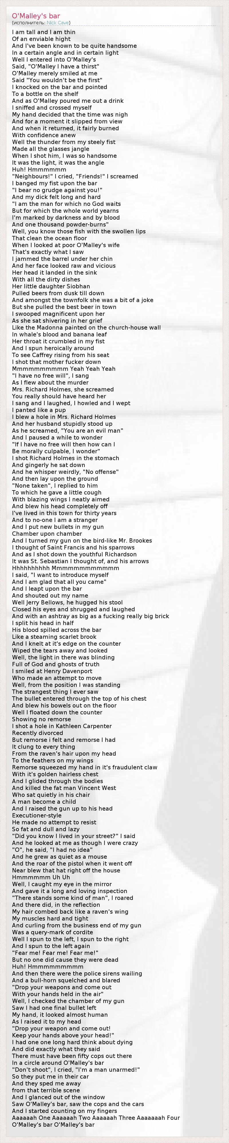А как ты думаешь, о чем песня "O'Malley's bar" ?