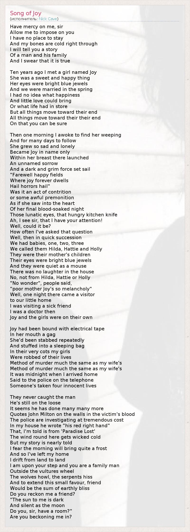 А как ты думаешь, о чем песня "Song of Joy" ?