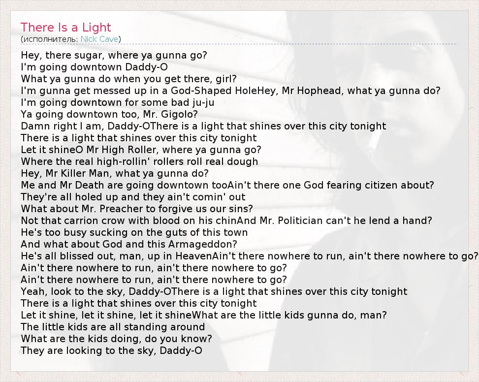 А как ты думаешь, о чем песня "There Is a Light" ?