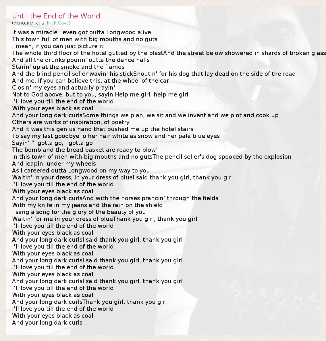 ГлавнаяИсполнителиNick CaveUntil the End of the World