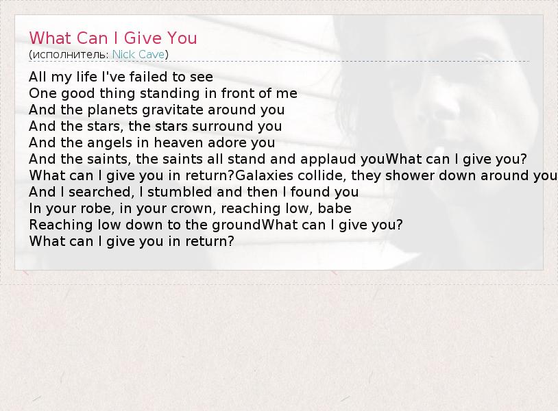 А как ты думаешь, о чем песня "What Can I Give You" ?