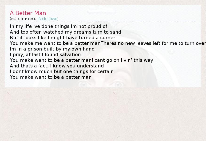 You make me want to be a better manTheres no new leaves left for me to turn over