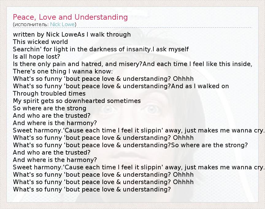 А как ты думаешь, о чем песня "Peace, Love and Understanding" ?