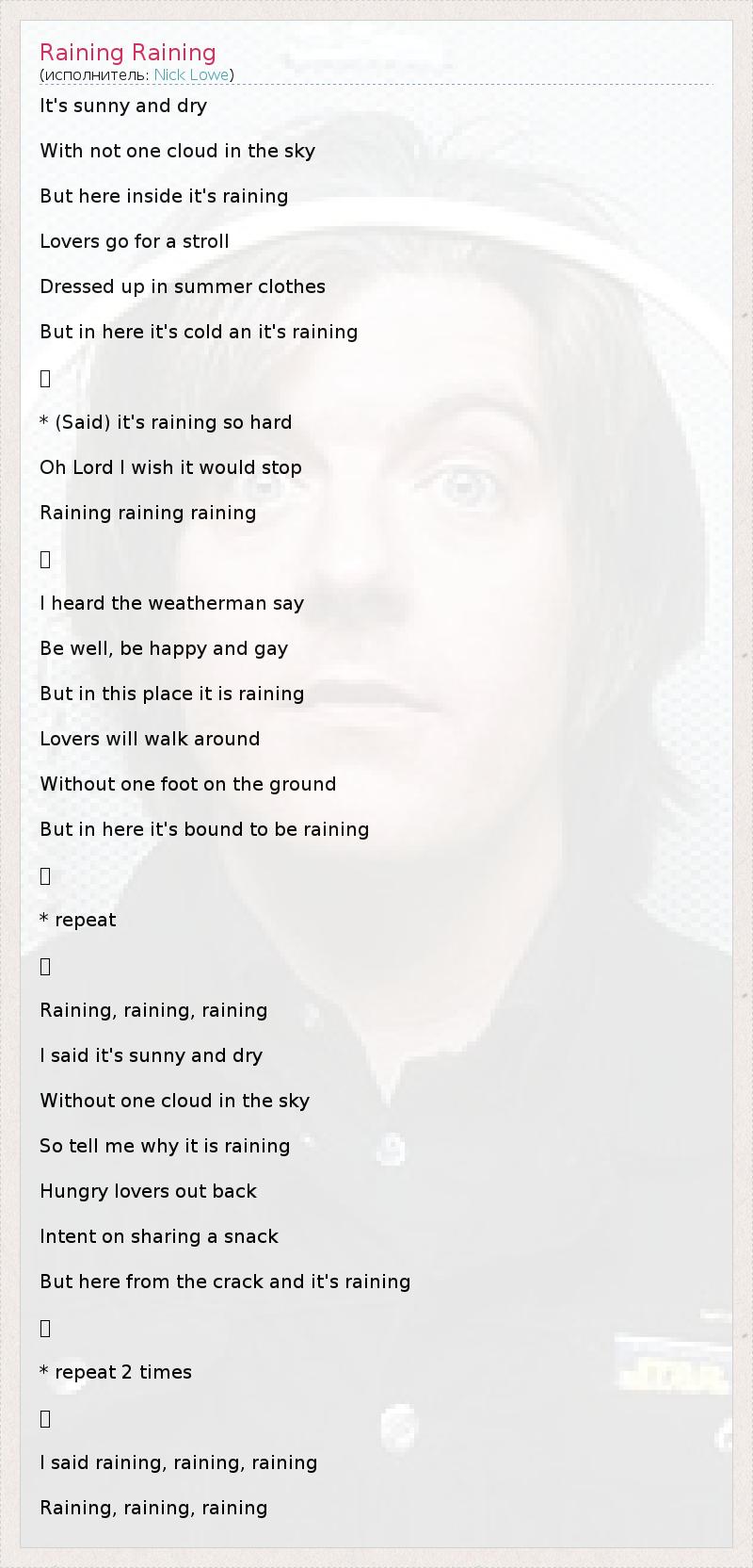 А как ты думаешь, о чем песня "Raining Raining" ?