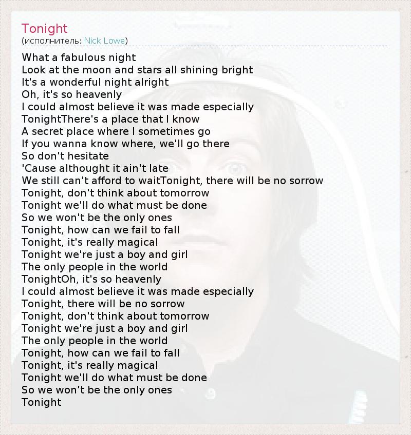 А как ты думаешь, о чем песня "Tonight" ?