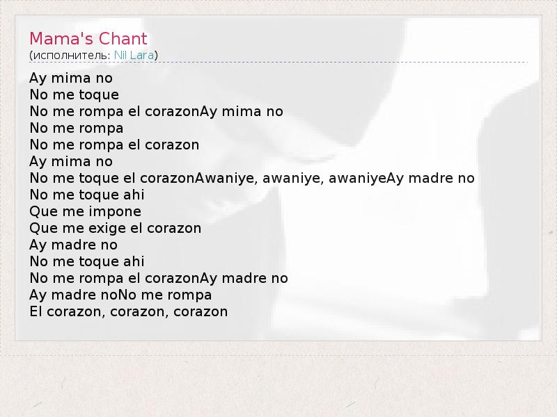 А как ты думаешь, о чем песня "Mama's Chant" ?