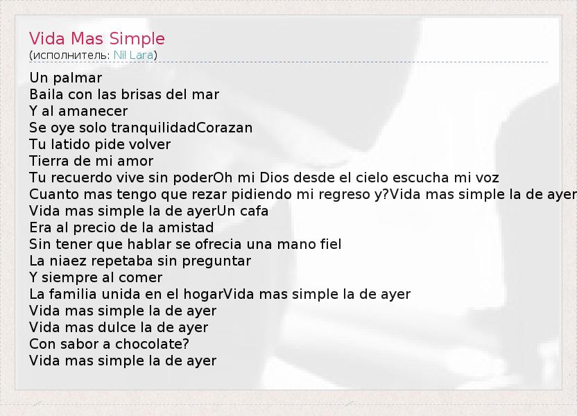 А как ты думаешь, о чем песня "Vida Mas Simple" ?