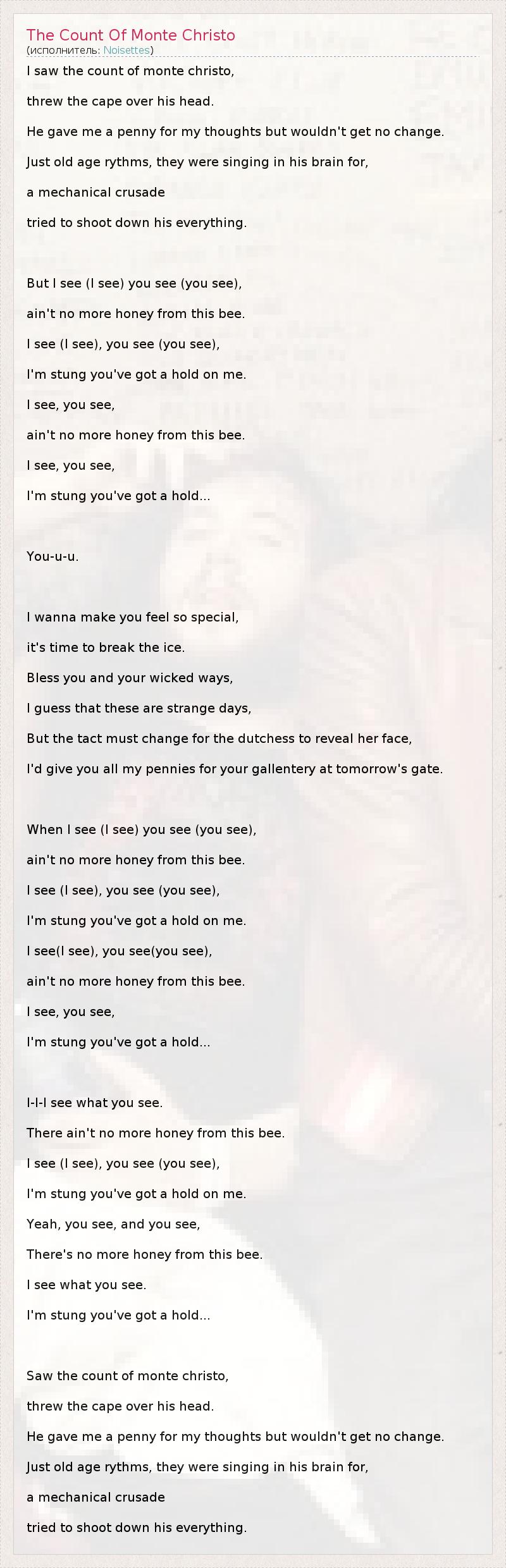 А как ты думаешь, о чем песня "The Count Of Monte Christo" ?