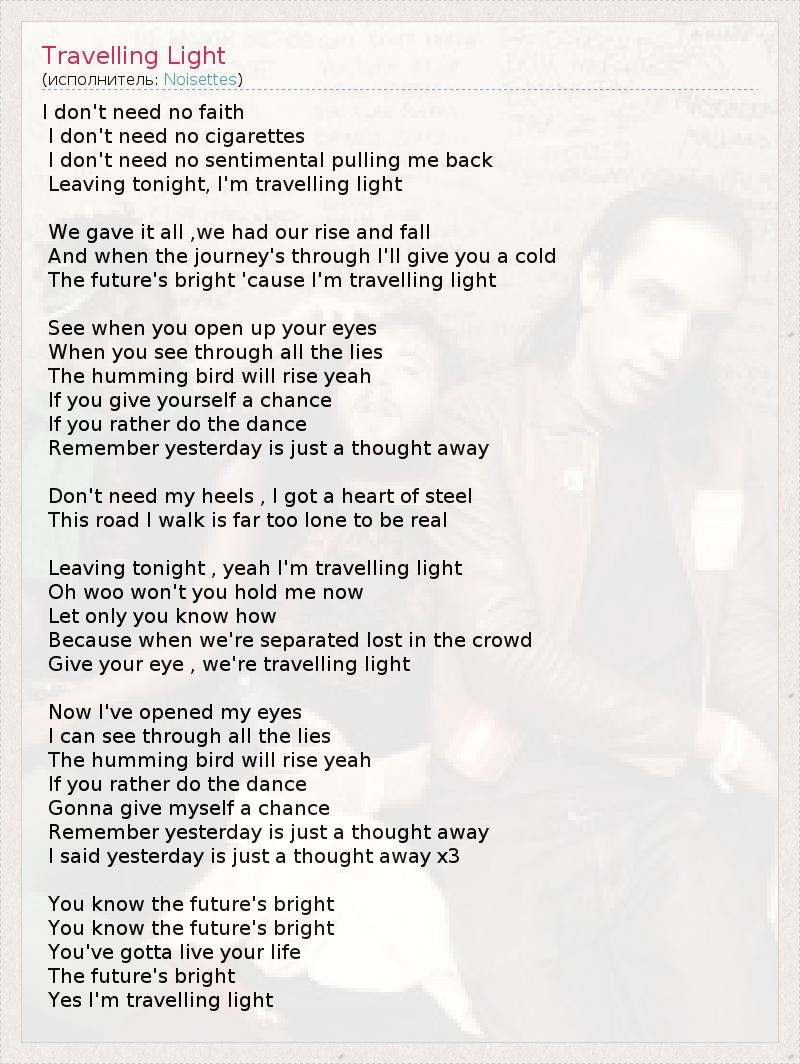 А как ты думаешь, о чем песня "Travelling Light" ?
