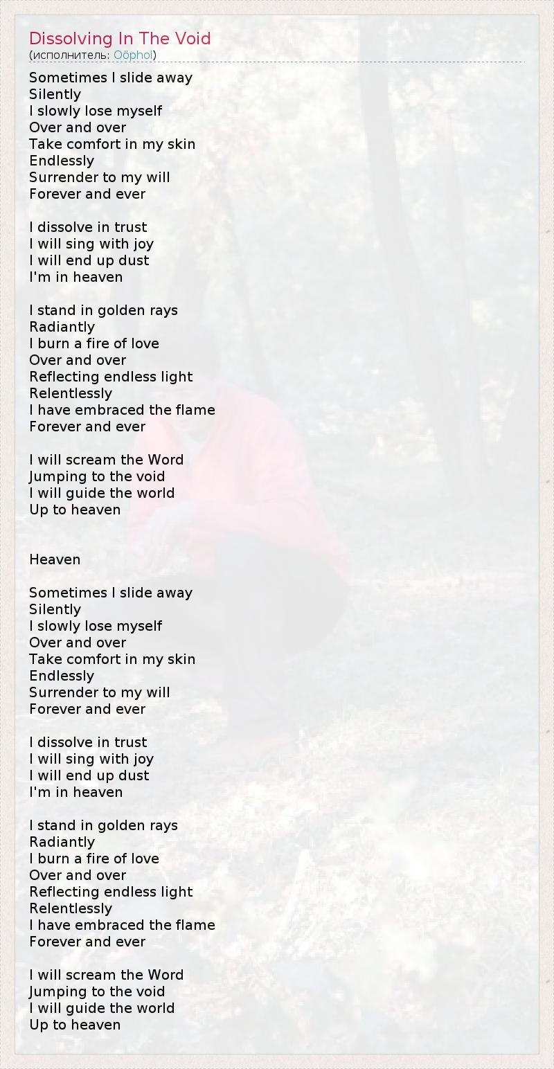 А как ты думаешь, о чем песня "Dissolving In The Void" ?