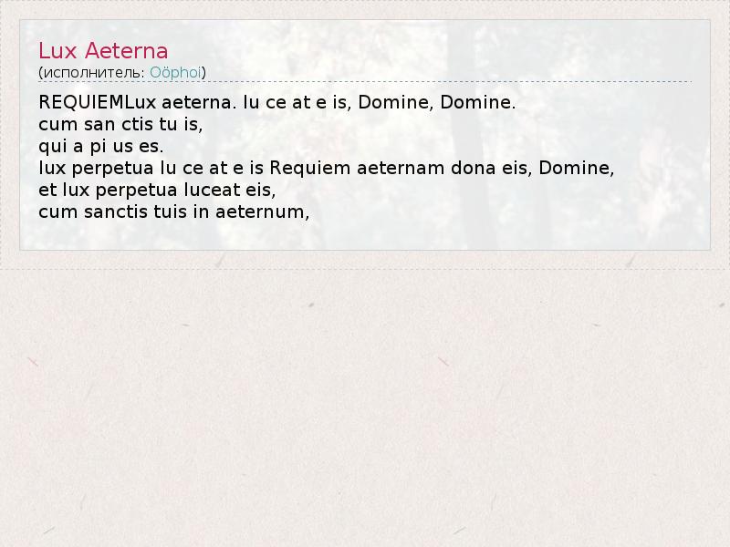 А как ты думаешь, о чем песня "Lux Aeterna" ?