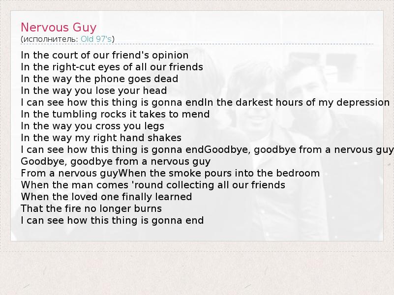 А как ты думаешь, о чем песня "Nervous Guy" ?